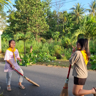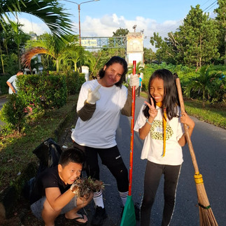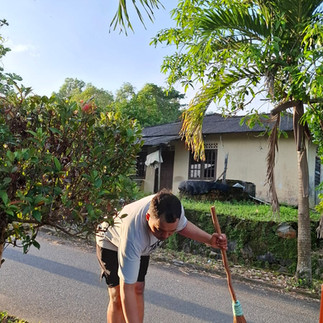Usai ibadah, seluruh peserta melaksanakan gotong royong membersihkan jalan umum dan lingkungan sekitar. Dengan menggunakan peralatan sederhana seperti gunting daun, sapu lidi, dan sapu daun, para peserta bekerja bersama membersihkan rumput, daun kering, dan sampah yang mengganggu keindahan lingkungan. Suasana kerja berlangsung penuh sukacita, tertib, dan saling mendukung satu sama lain.